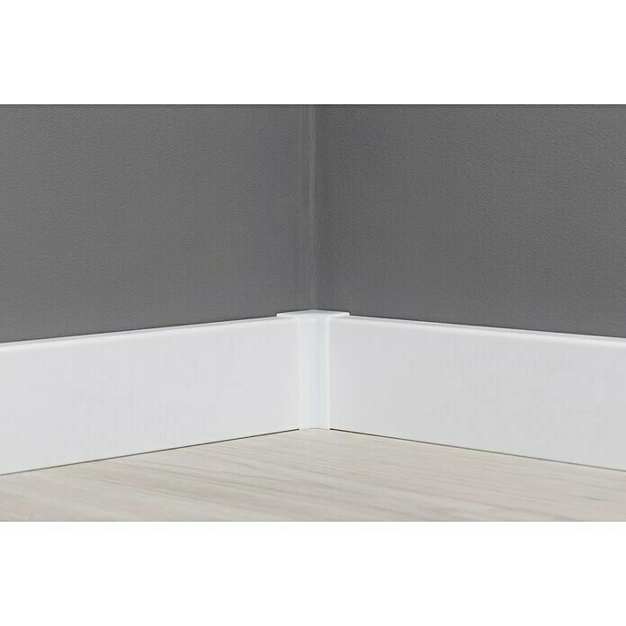 Diese Innenecke aus Kunststoff passt perfekt zu unserer Sockelleiste mit Dekorfolie im Farbton ähnlich RAL 9003. Sie ermöglicht eine schnelle Montage ohne aufwändige Gehrungsschnitte.