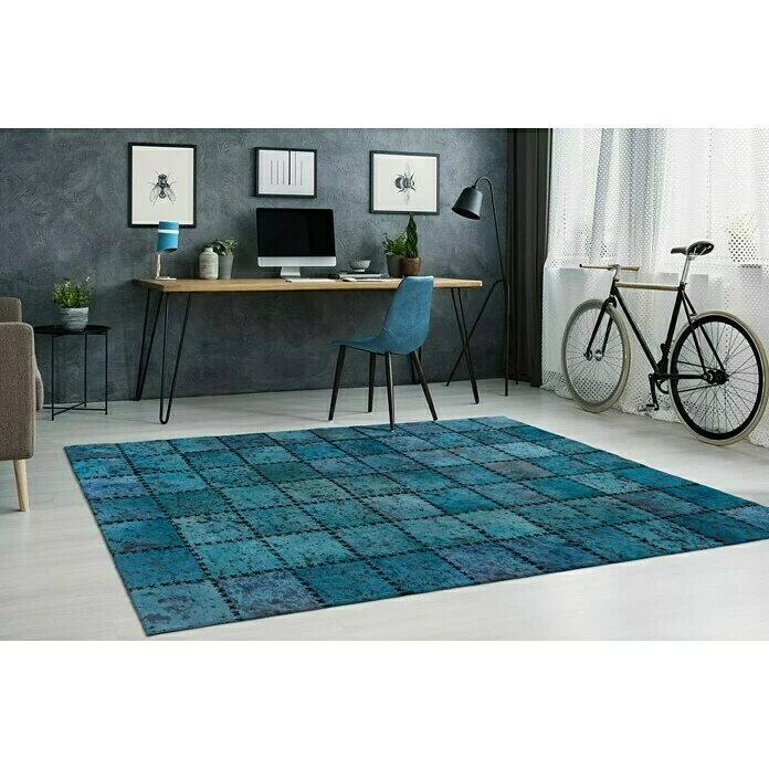 BAUHAUS Kayoom Echtlederteppich Viola Türkis, 230 X 160 Cm, 100 % Echtleder