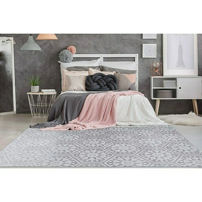 Der Kayoom Kurzflorteppich Monroe in mit einem geprägtem Muster designed. Dieses Teppichmodell ist ein ganz besonderes Schmuckstück und unterstreicht eine luxoriöse Innenraumgestaltung. Der einfarbige Kuschelflor ist mit einem Prägedruck versehen, der für eine zweifarbige Wirkung sorgt und gleichzeitig einen 3D-Effekt generiert. Durch die niedrigeren geprägten Fasern entstehen Höhen und Tiefen in der Oberfläche, die dem Teppich zu seiner besonderen Optik verhelfen. Rundherum ist der Teppich gekettelt, wodurch ein Ausfransen verhindert und gleichzeitig das Gesamtbild abrundet wird. Das stilvolle Design passt in nahezu jeden Einrichtungsstil und sorgt in den Wohnräumen für angenehme Wohlfühlatmosphäre. In der Haptik fühlt sich der Flor an wie echtes Kaninchenfell und ist somit besonders weich und komfortabel. Durch den Baumwollrücken mit Anti-Rutsch-Noppen wird unerwünschtes Verrutschen des Teppichs verhindert. So kann er optimal als Vorleger vor dem Bett im Schlafzimmer genutzt werden, um direkt beim Aufstehen das angenehme Gefühl unter den Füßen spüren zu können. Aber auch für gemütliche Stunden vor dem Kamin ist dieser Teppich optimal geeignet. In der passenden Kombination mit Heimtextilien und stimmiger Beleuchtung schafft dieser moderne Kurzflorteppich eine kuschelige und gemütliche Atmosphäre – nicht nur vor dem Kamin.