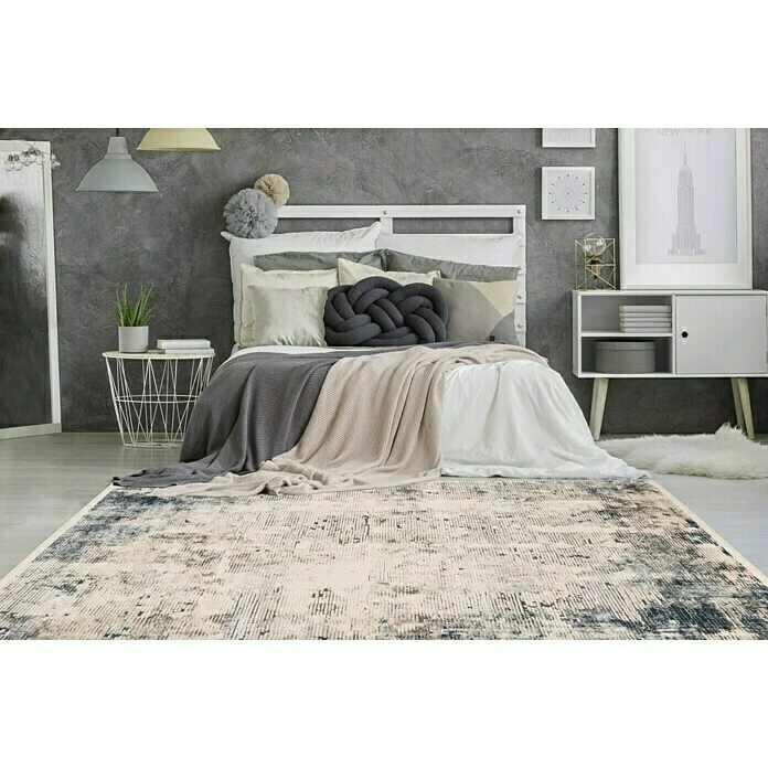 Der Kayoom Kurzflorteppich Palace ist ein attraktiver Teppich mit Vintage-Charme. Durch die zeitlose Farbgebung und moderne Gestaltung integriert sich dieser Teppich in vielerlei Einrichtungsstile und setzt sowohl Möbel als auch andere Einrichtungsgegenstände dekorativ in Szene. Typische verwaschene Bereiche sind bei diesem Vintage-Teppich besonders ausgeprägt und unterstreichen eine trendbewusste Wohnraumgestaltung. Weiche Fransen an den Teppichenden runden das Gesamtbild stilvoll ab. Der Teppich hat einen weichen, kreuzgewebten Flor, welcher angenehmen Wohnkomfort unterstützt. Palace kreiert ein gemütliches Ambiente im jedem Raum. Auf kalten Fliesen oder Laminat unterstützt er Barfußläufer sehr komfortabel. Wärmere Bodenbeläge wie beispielsweise Holz oder Räume mit Fußbodenheizung sind jedoch ebenfalls ein idealer Ort, um den neuen Teppich mit Vintage-Charme zu platzieren. Verstärkt ist der Flor mit einem Baumwollrücken.