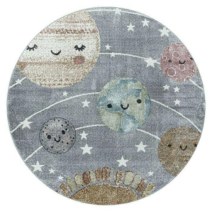 BAUHAUS Kurzflorteppich Funny 2105 Grau, Durchmesser: 120 Cm, 100% Polypropylen