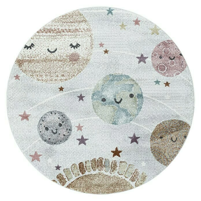 BAUHAUS Kurzflorteppich Funny 2105 Weiß, Durchmesser: 120 Cm, 100% Polypropylen