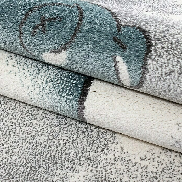 Der Kurzflorteppich Kids ist ein Kinderzimmerteppich mit tollem Design. Dieser attraktive Spielteppich ist optimal für das Kinderzimmer von heute geeignet. Das verspielte, kindgerechte Motiv und die dezenten Farben eignen sich ideal als Spieluntergrund und lassen Kinderaugen strahlen. Er bietet einen weichen Grundfläche, auf dem Kinder sichtbare Freude haben werden. Ein großer Vorteil ist auch das pflegeleichte Material und die robuste Qualität dieses Kinderteppichs. Gerade im Kinderzimmer sind diese Eigenschaften empfehlenswert. Er hält hoher Beanspruchung und Verschmutzungen stand, sodass Kinder lange Zeit Freude an dem neuen Bodenbelag haben.