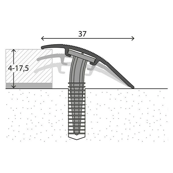 Das LOGOCLIC Anpassprofil wird mit Nylon-Lamellendübeln verdeckt befestigt. Ins Bohrloch eingetrieben, krallen sich die Lamellen an der Bohrlochwand fest und sorgen für dauerhaften Halt. Zugleich bewirkt die Elastizität des Dübels, dass sich das Profil in Höhe und Neigung dem Bodenbelag und Niveauunterschieden anpassen kann. Im Gegensatz zu Profilen mit vorgegebenen Bohrlöchern, können die Bohrlöcher dort gesetzt werden, wo die Haltekräfte benötigt werden, z.B. in Laufstraßen. Da das Profil ohne Basisprofil verarbeitet wird, ist es die ideale Lösung, um Dehnungsfugen im Bodenbelag nachträglich zu schließen.