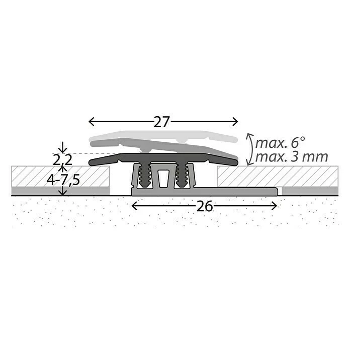 Das LOGOCLIC Übergangsprofil wurde speziell für schwimmend verlegte Designbeläge entwickelt. Die verzahnten Profilstege des Oberprofils rasten sicher in den trapezförmigen Aufnahmen des Basisprofils ein. Dabei kann das Oberprofil leicht verkippen und sich variabel in Höhe und Neigung dem Bodenbelag anpassen. Die schmalen, flachen Profile überzeugen durch eine besonders schöne Optik und bieten gleichzeitig großzügige Dehnungsfugen für die Dimensionsschwankungen des Bodenbelages. Bei Bedarf können die Oberprofile gelöst und anschließend wieder im Basisprofil verankert werden. Die Montage ist schnell und einfach. Zunächst wird das Basisprofil mit Montage- oder einem Zwei-Komponenten-Kleber auf dem Untergrund verklebt. Nach der Bodenverlegung wird das Oberprofil einfach eingeclipst. Hinweis: Passender Klebstoff oder Montagematerial ist separat zu erwerben.