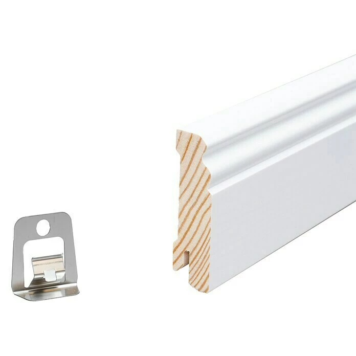 Diese Premium-Sockelleiste mit altdeutschem Profil besteht aus keilgezinktem weiß lackierten Kiefernholz. Ein Traum für die stilvolle Altbaurenovierung oder den anspruchsvollen Innenausbau. Neben ihrer eleganten, klassischen Form überzeugt sie durch ihre Massivholz-Qualität mit höchster Beständigkeit und Langlebigkeit. Auch verfügt sie über eine Clip-Nut und ist damit leicht und schnell zu befestigen.