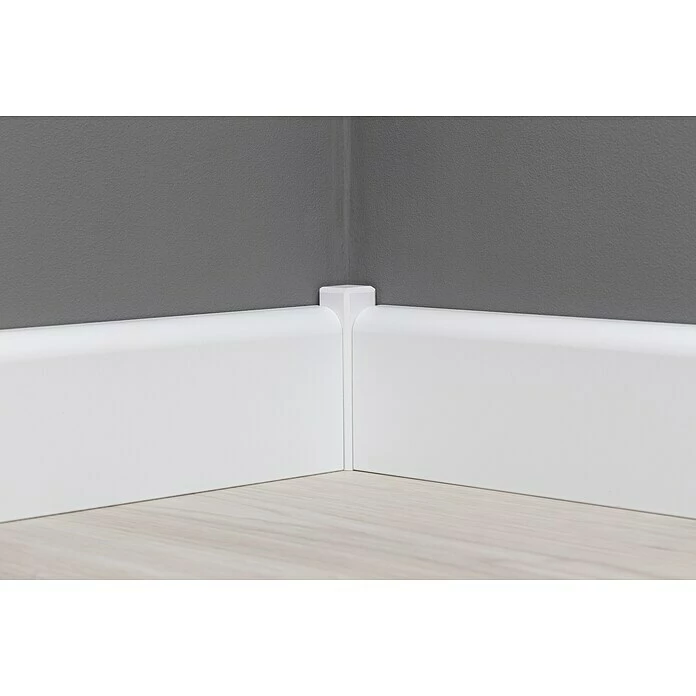 Diese weiße Sockelleiste ist aus äußerst robustem MDF gefertigt. Das klassische abgerundete Profil fügt sich stilvoll in jede Raumgestaltung ein. Durch die Clip-Nut der Sockelleiste ist sie obendrein im Handumdrehen montiert.