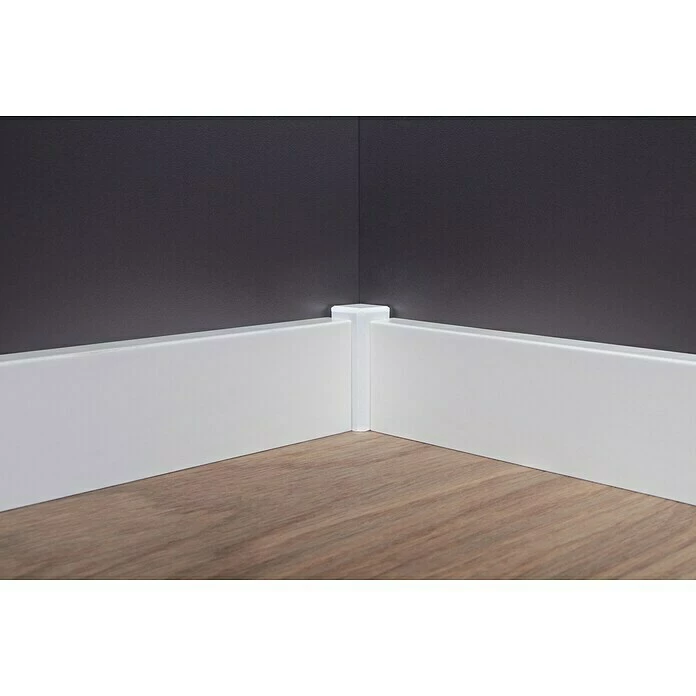 Die Sockelleiste aus einem hochwertigen Fichtenholzkern ist von einer Starkfolie in klarem, reinem Weiß ummantelt. Das Ergebnis ist eine besonders robuste, langlebige Leiste, die mit einem schlichten, puristischen Look punktet. Dieser wird durch ihr modernes, eckiges Profil noch verstärkt, da dieses zu vielerlei Einrichtungsstilen passt. Einen praktischen Vorteil bietet die Clip-Nut der Sockelleiste. Damit ist eine einfache und verdeckte Montage möglich.