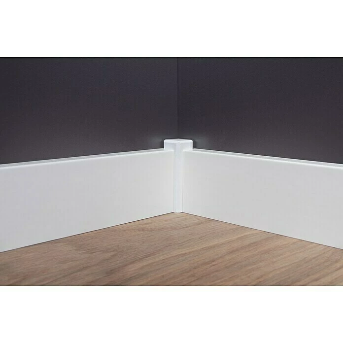 Die Sockelleiste aus einem hochwertigen Fichtenholzkern ist von einer Starkfolie in klarem, reinem Weiß ummantelt. Das Ergebnis ist eine besonders robuste, langlebige Leiste, die mit einem schlichten, puristischen Look punktet. Dieser wird durch ihr modernes, eckiges Profil noch verstärkt, da dieses zu vielerlei Einrichtungsstilen passt. Einen praktischen Vorteil bietet die Clip-Nut der Sockelleiste. Damit ist eine einfache und verdeckte Montage möglich.