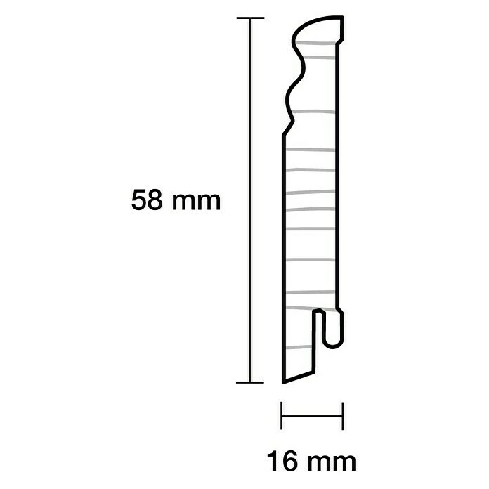 BAUHAUS Sockelleiste Weiß, 2,4 M X 16 Mm X 58 Mm, Profiliert