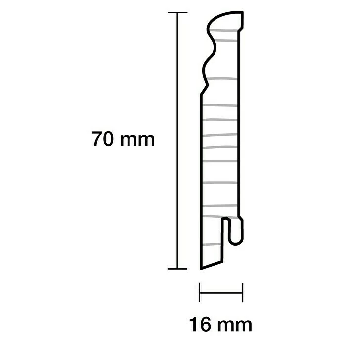 BAUHAUS Sockelleiste Weiß, 2,4 M X 16 Mm X 70 Mm, Profiliert