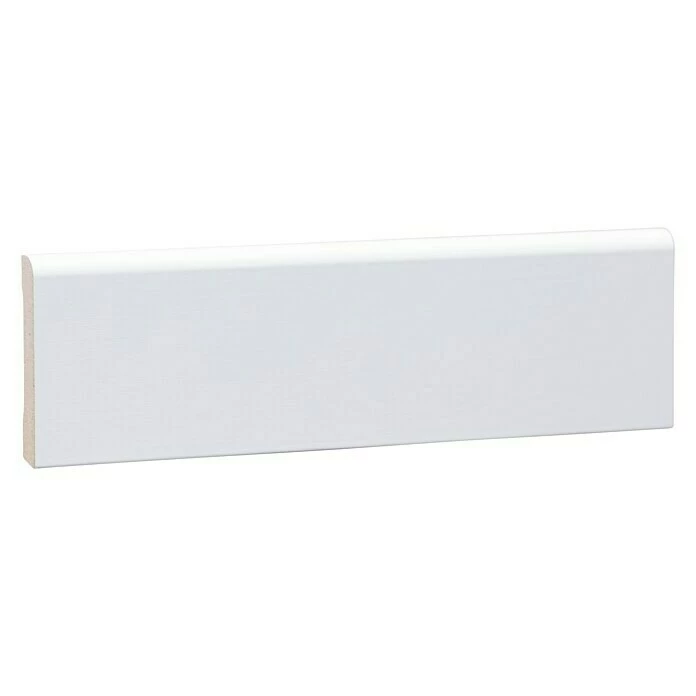 Die Sockelleiste aus MDF punktet mit robuster Langlebigkeit. Es muss nicht immer Vollholz sein. In Weiß, mit oben abgerundetem Profil, ist sie ein echter Klassiker. So wertet sie jeden Wohnraum durch einen sauberen Abschluss zwischen Boden und Wand auf und strahlt dabei gepflegte Frische aus. Zudem lässt sie sich ideal mit Holz- und Farbnuancen aller Art kombinieren.