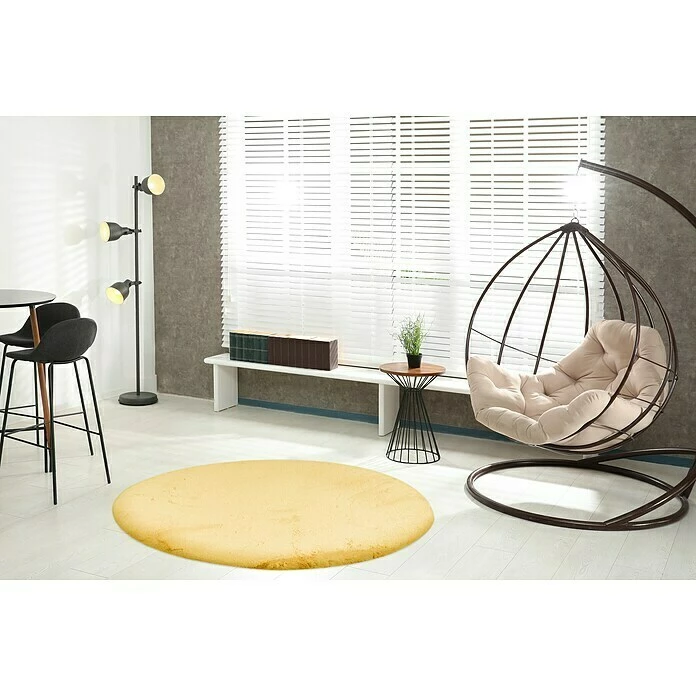 BAUHAUS Teppich Rund Happy Gelb, Durchmesser: 120 Cm, 100 % Polyester (Flor)