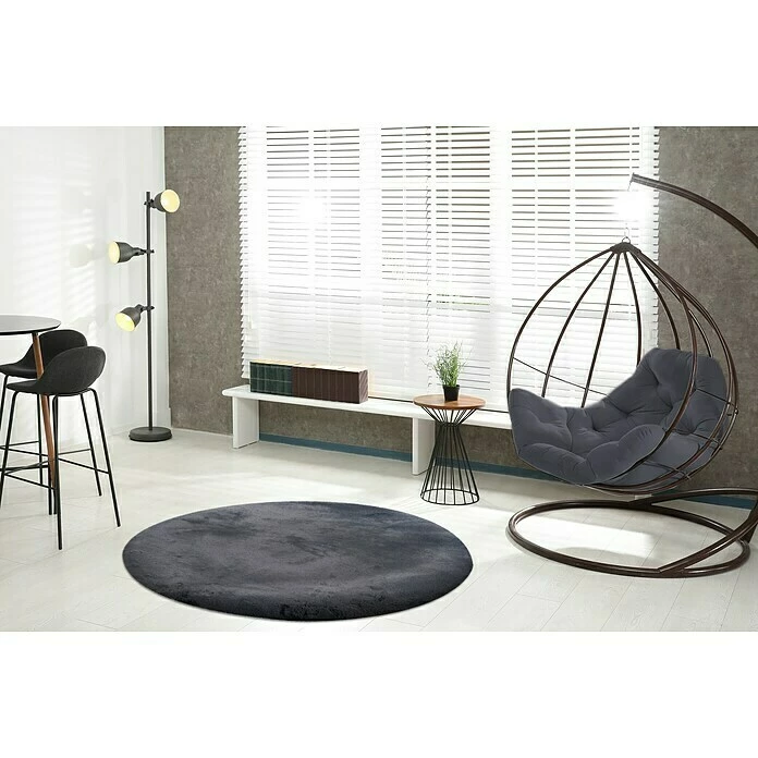 BAUHAUS Teppich Rund Happy Graphit, Durchmesser: 160 Cm, 100 % Polyester (Flor)