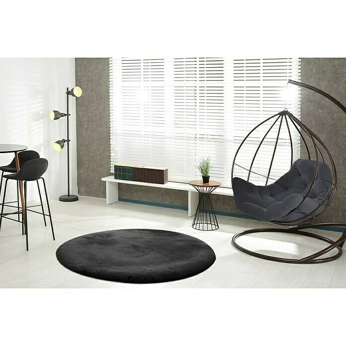 BAUHAUS Teppich Rund Happy Schwarz, Durchmesser: 120 Cm, 100 % Polyester (Flor)