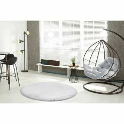 BAUHAUS Teppich Rund Stampa Weiß/Beige, Durchmesser: 100 Cm, 100 % Polyester